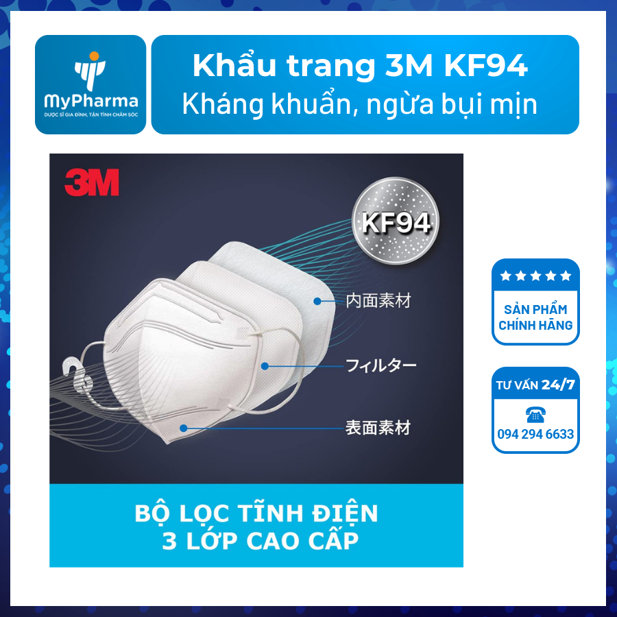 Khẩu trang 3M KF94 – kháng khuẩn, chống bụi mịn cho trẻ em và người lớn