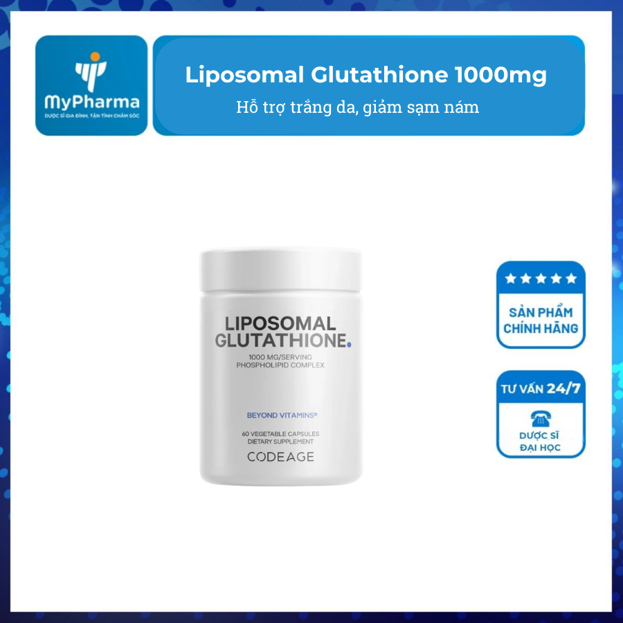 Liposomal Glutathione 1000mg H/60v CODEAGE – Hỗ trợ trắng da, giảm sạm nám