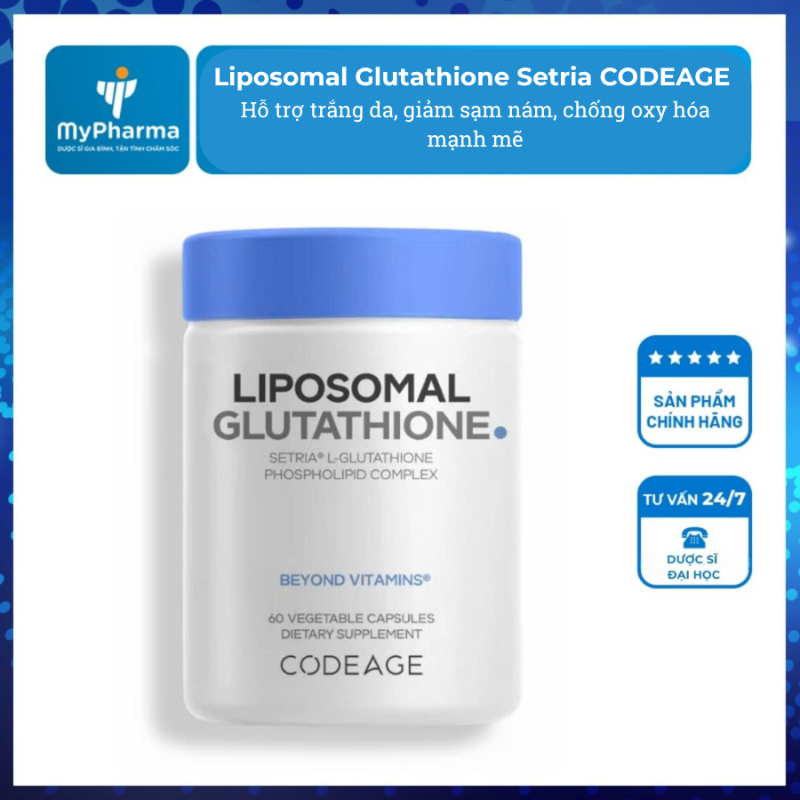 Liposomal Glutathione Setria CODEAGE – Hỗ trợ trắng da, giảm sạm nám, chống oxy hóa mạnh mẽ – Hộp 60 viên